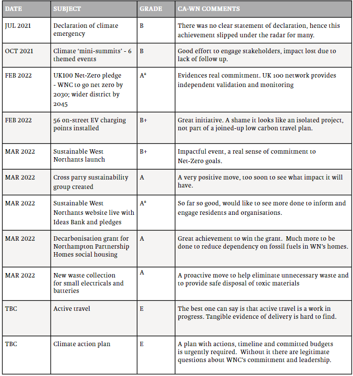 At CA-WN we see ourselves as a ‘critical friend’ to the council; we support WNC’s commitment to achieving Net Zero, whilst retaining our right as a climate action group representing local residents to call them out if they are falling short.