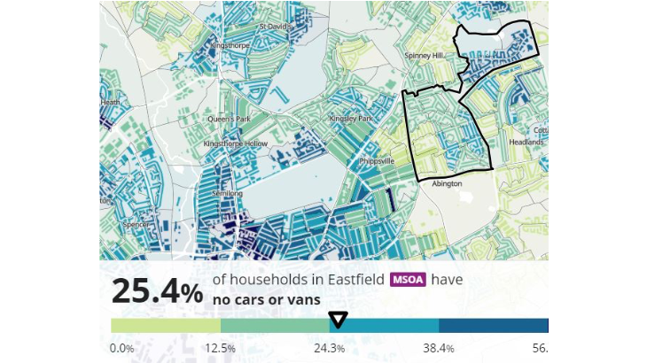 Some other stats worth mulling over: 46.2% of households in the town centre and Semilong area do not own a car. UK wide, 22% of households do not own a car.