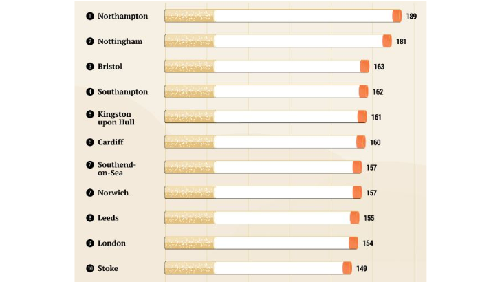 A study conducted in 2022 has put together a world map of air pollution. The way they have characterised the data is to show the equivalent amount of cigarettes you would have smoked had you lived one year in each city. Look who tops it in the UK: