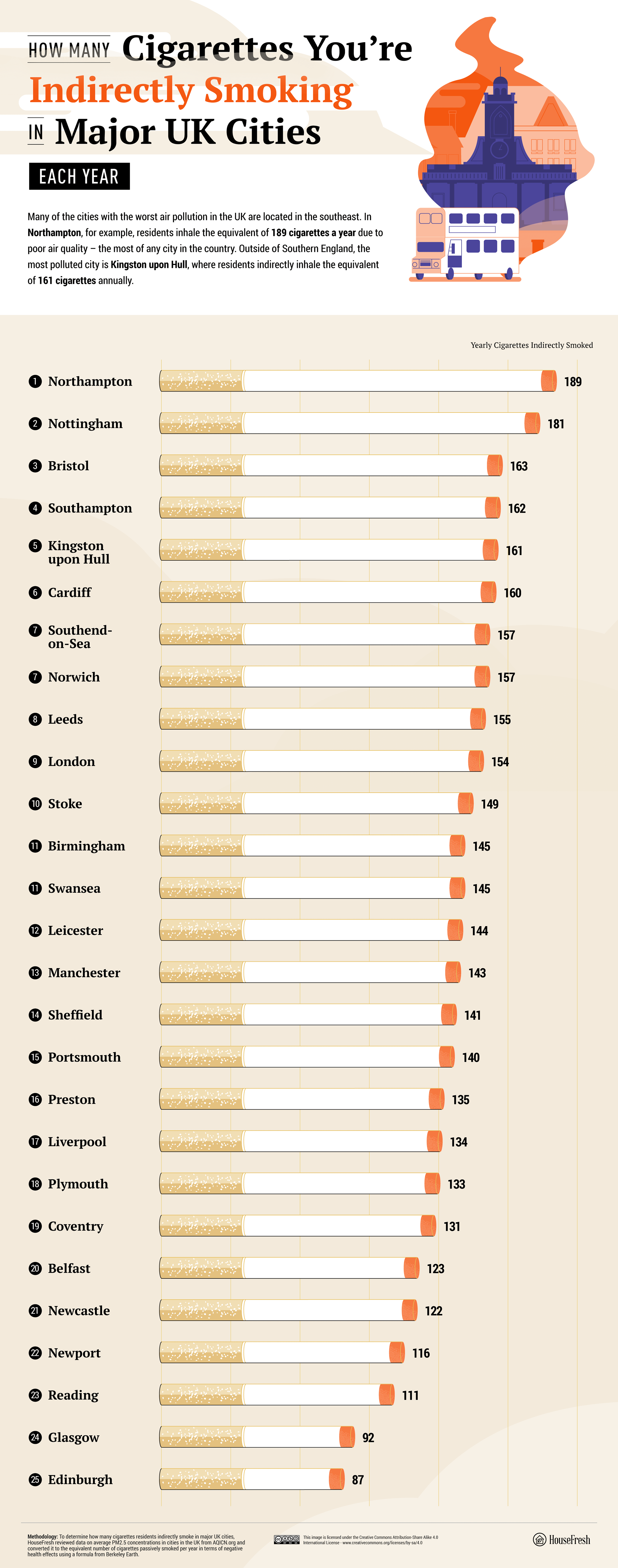 The Mirror story was picked up from indoor air quality experts at HouseFresh who used PM2.5 data collected by AQICN and converted it to the equivalent number of cigarettes passively smoked per year using a formula from Berkeley Earth.