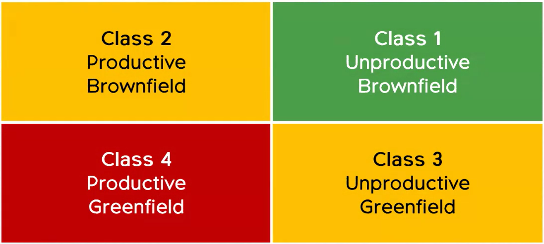Land can be classified in line with the matrix below: